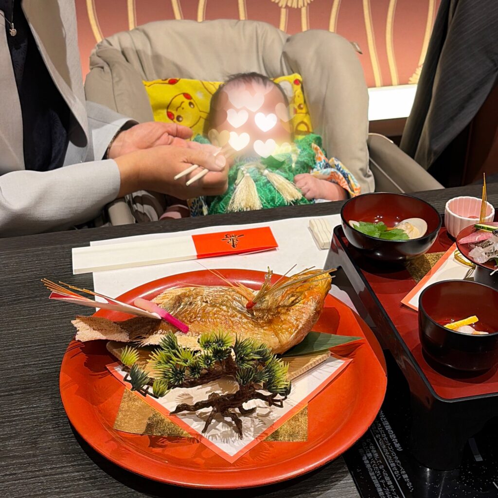 ◆ 夜は木曽路でお食い初め|3世代で締めくくり