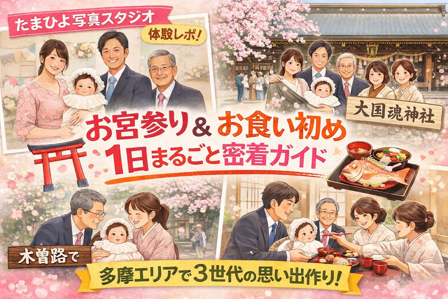 今回はたまひよの写真スタジオでのお宮参り&お食い初めの3世代記念撮影の1日を、リアル体験ベースでお届けします。