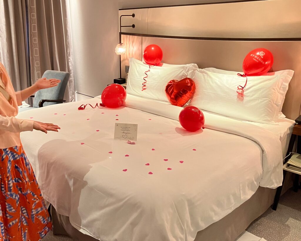 部屋に戻ると、なんとベッドが風船でデコレーションされていました。