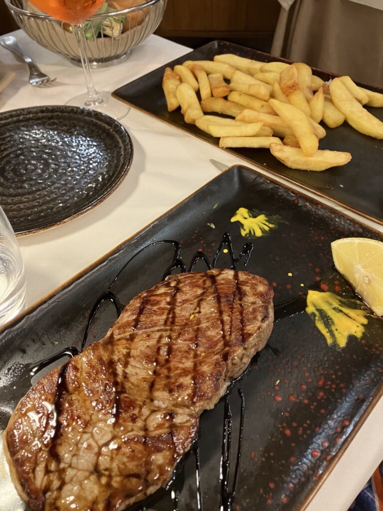 注文したステーキやポテトは、とにかくボリュームがすごくて食べきれないほど。